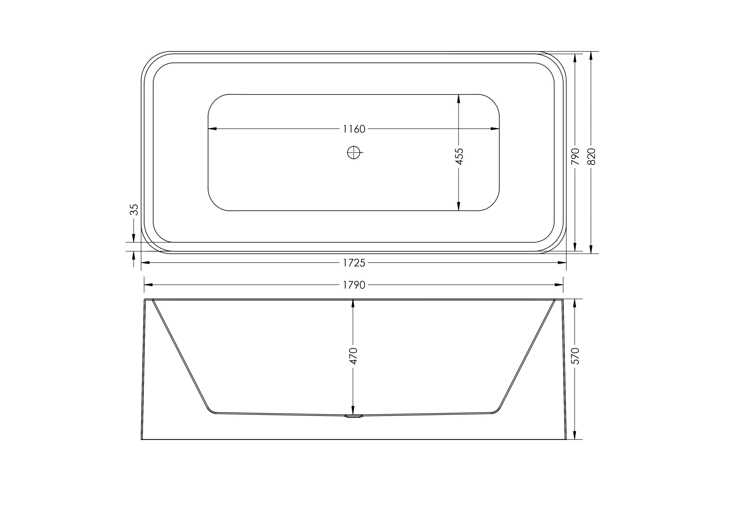 OAKLEY NO OVERFLOW F/S BATH 1700*800*570MM – WHITE